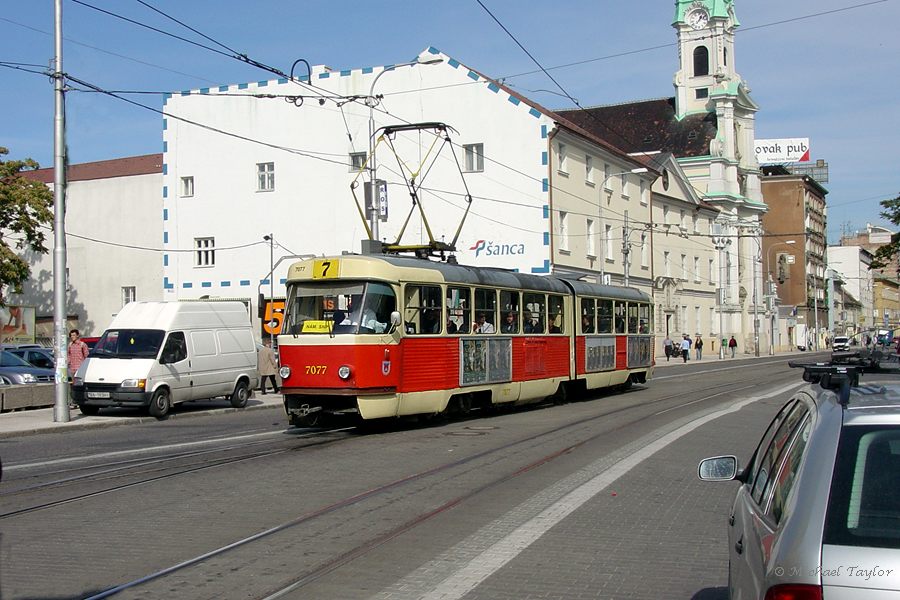 Bratislava. K2 7077 with a westbound 7 service at Kamenné námestie on Friday October 1st, 2004.