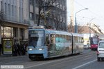 Straßenbahn Bratislava - 7113 Triebwagen 7113 auf Linie 13 bei der Haltestelle Poštová am 25. Februar 2010.