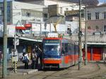 Straßenbahn Bratislava - 7118 Triebwagen 7118 auf Linie 3 am Bahnhof Bratislava Vinohrady am 16. September 2008. In der Wendeschleife rechts im Bild wartet Triebwagen 7729.