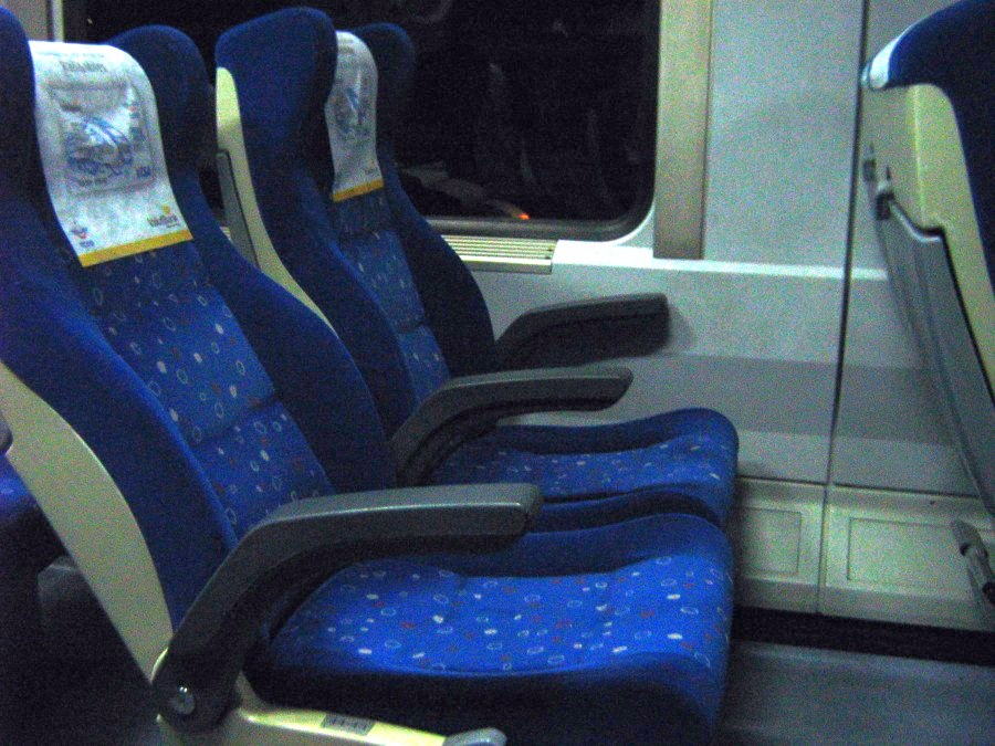 Seating arrangement unchanged, yet new, better-contoured seats, with power points. E 11023 "Cumhuriyet-Ekspresi" (Eskisehir ---> Istanbul Haydarpasa), connecting with YHT 91005 (Ankara ---> Eskisehir). Istanbul-Haydarpasa. 22nd October 2009.