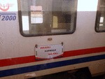 A destination table onto passenger car type "WSPlm" of TCDD (Turkiye Cumhuriyeti Devlet Demiryollari / Turkish Railways ) standing at railway station Ankara in composition of train "Dogu Ekspresi" to Kars. A video movie about departuring the train you can see on this adress: