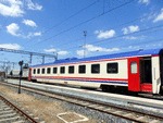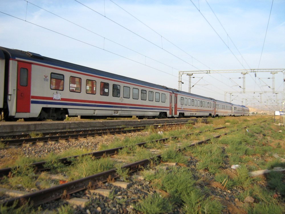 TVS-2000 Pullman car (WSPlm) of TCDD, seen in the consist of E 31127 "Izmir Mavi Tren" (Izmir-Basmane ---> Ankara), next to the Istanbul-Ankara HTH (Stage 1: Eskisehir-Esenkent).