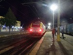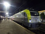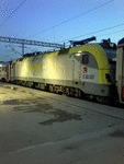 An electric locomotive E 68 020 of TCDD ( Turkiye Cumhuriyeti Devlet Demiryollari / Turkish Railways ) "Trakya" standing at railway staion Istanbul HalkalI with International train with number 1493 from Sofia. This train carris a directly sleeping car from Bucuresti Nord.My impression about visiting that European part of Turkey , you can see on this adress:
