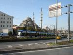 Flexity tram set, seen on a Westbound service (Kabatas ---> Zeytinburnu), while calling at Eminönü, next to the New Mosque. Background: Soliman's Mosque (Left) and Rüstem Pasa's Mosque (Right). Eminönü. 19th October 2009.
