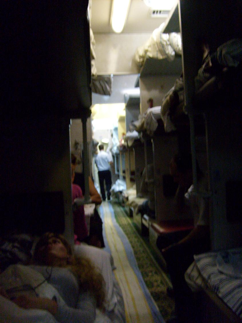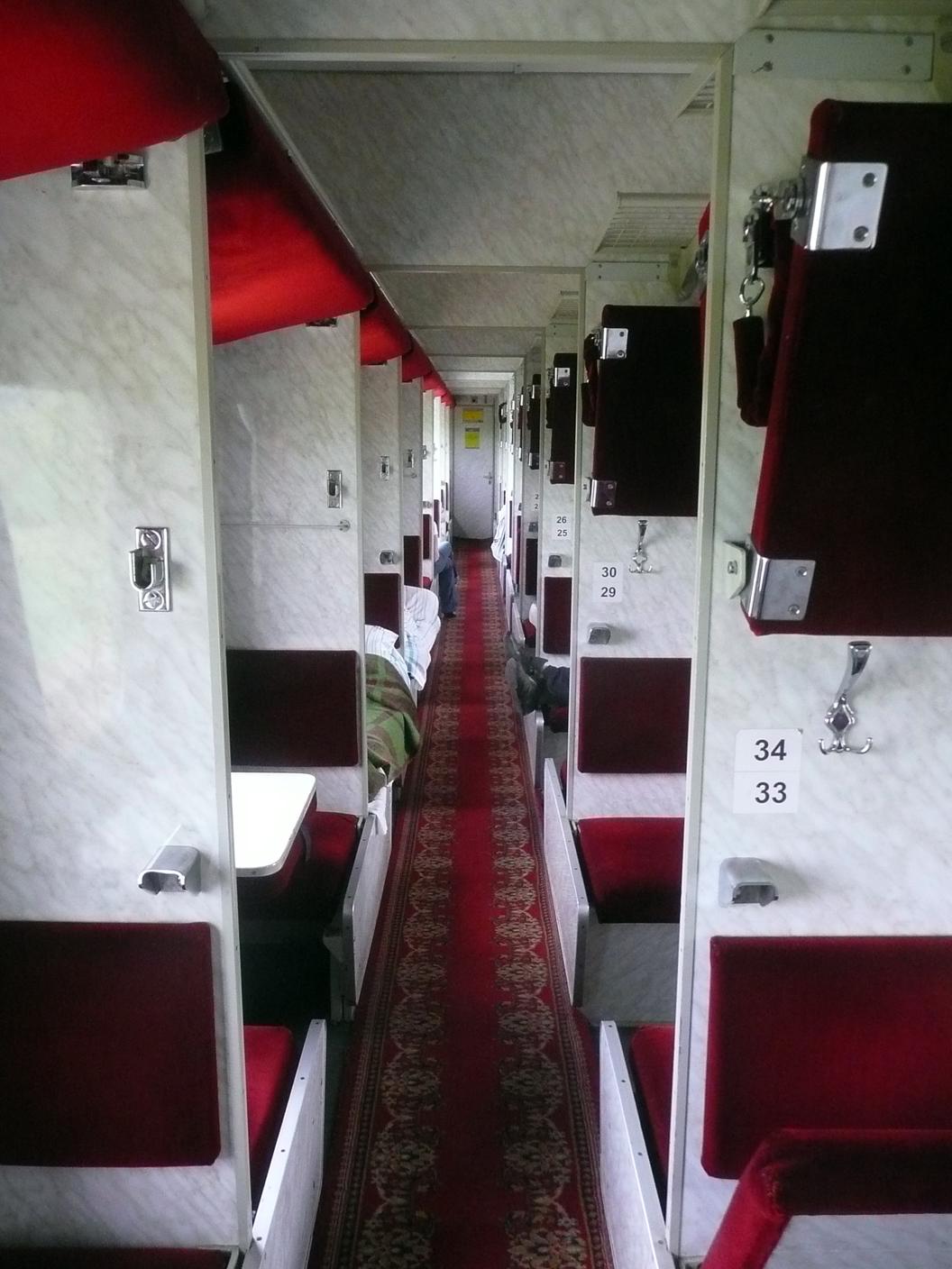 Inside 3rd class sleeping car of the Ukrainian railways.
