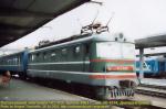 Ukrzaliznytsia, Ukraine. ChS2-476 (Skoda type 34E) built by Skoda around 1965 pulling fast train 279 Cheliabinsk-Simferopol consisting of RZD sleeping cars. Zaporizhzia-1 station early morning 12 August 2006 Photo by Walter Sharp, Toronto, Canada walter.sharp@hotmail.com |