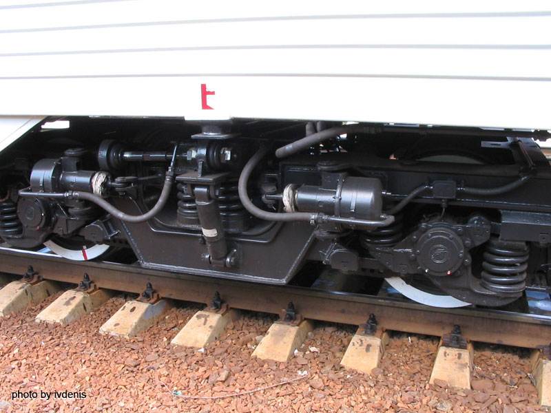 Bogie of EMU EPL9t-004 at Kiev-Passenger railway station in Kiev, Ukraine, 6.03.2004