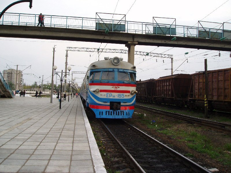 Ukrainian railway's UZ.EMU ER9 # 195 at Rovno railway station as
