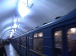 Kiev Metro Red line: train at platform of Vokzalna station (for Kiev Pass. railway station). |