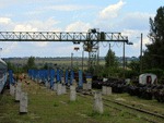 A view from railway station Vadul Siret - border station between Ukraine and Romania. Here is changing the boogies from 1435 mm European gauge to 1520 mm Russian type. The regauging facility is close to the station.