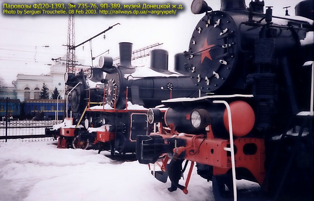 Steam locomotives FD20 (ФД20) 1393, EM (ЭМ) 735-76 and 9P (9П) 389 in Donetsk Railway Museum, Ukraine Photo by Serguei Trouchelle (stro@railways.dp.ua), http://railways.dp.ua/~angryxpeh/ |