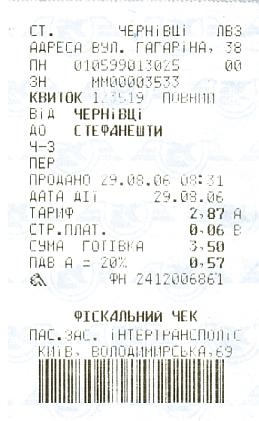 UZ-ticket Sokyryany-Larha, issued on train 609 There is no Express-terminal at this station, so you have to buy the ticket on the train 2.9.2006