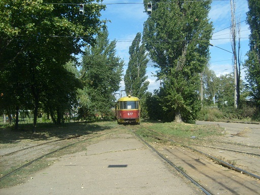 | Tram 7031, Linie 5, beim Einbiegen in die Wendeschleife vor der Endstelle Jushny Woksal. Dr. Sternol, Eckart Dr.Sternol@t-online.de |