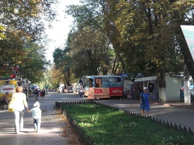 Modernised Tarta T5 tram at Arkadija terminus of line 5 in Odessa, Ukraine. 24.09.2012