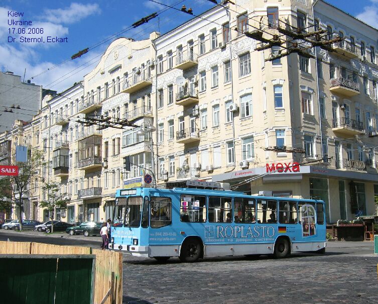 | IMG 5752 Kiew O 17.06.06 O-Bus 549, Linie 3, kommt eben von der Endstelle ul. Gospitalnaja, fährt am Hbf vorbei zur Endstelle Shelesnodoroshny massiw. Dr. Sternol, Eckart (Foto), Eckart.Sternol@bahn.de |