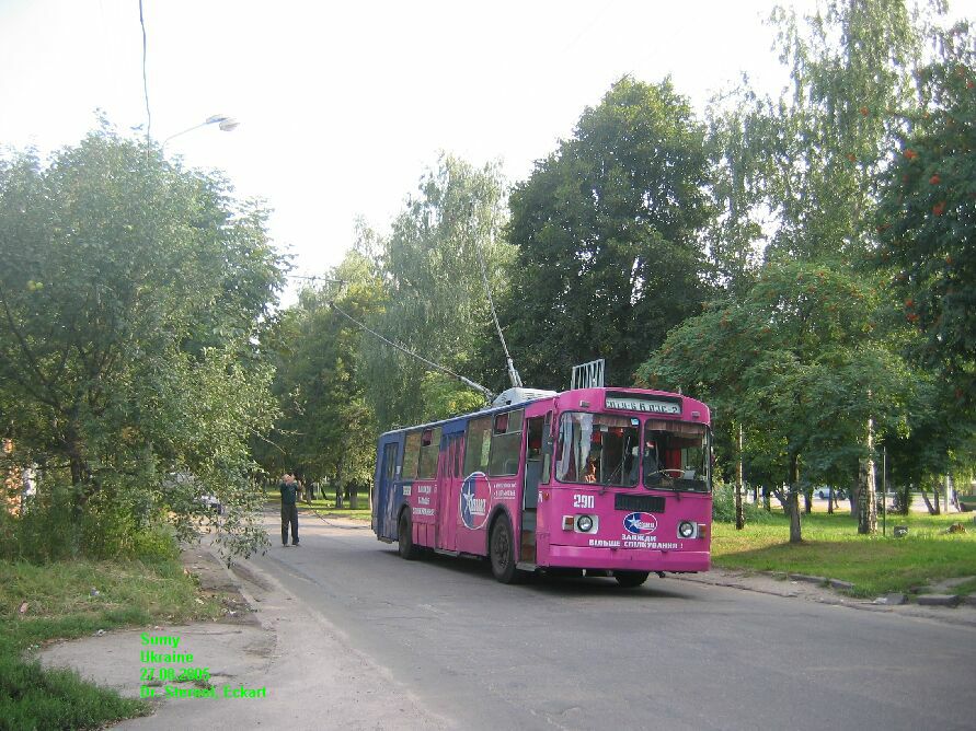 | IMG 8824 Sumy O 27.08.05 Wagen 290, Linie 6, Sumy, in Richtung ASS 2, während einer Stangenentgleisung Dr. Sternol, Eckart (Foto) Eckart.Sternol@bahn.de |