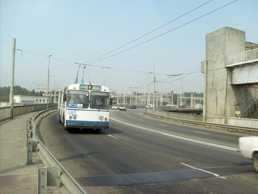 Trolleybus on the DneproGES in Zaporizhja, Ukraine. 16.08.2010