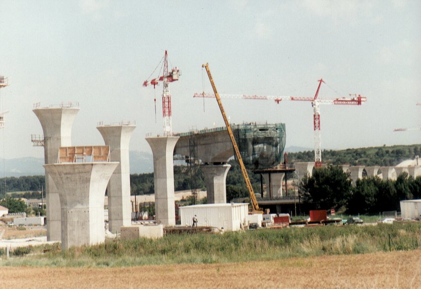 Another view of construction on the Ventabren bridge. June 1997 photo. Photo by Yann Nottara (ynottara@mail.dotcom.fr) |